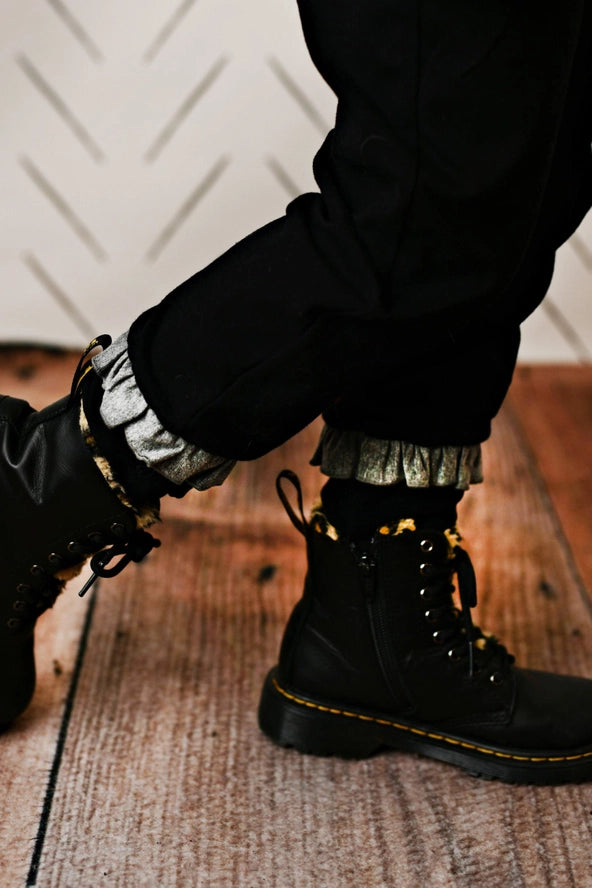 Black Portion: 97% Cotton, 3% Spandex Leopard Portion: 95% Polyester, 5% Spandex