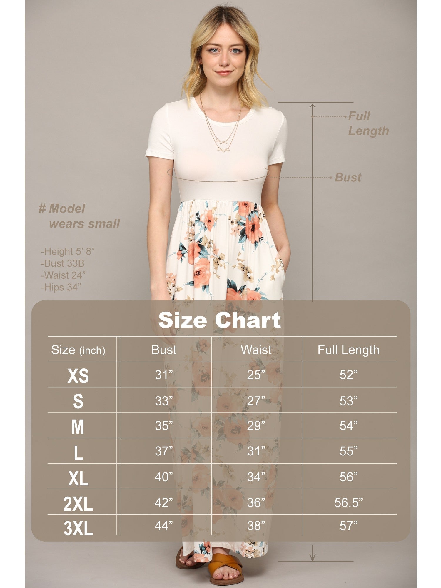 Features: Casual Style, Two Side Pockets, Short Sleeves, Round Neck, Floor Length, Elastic at Waist, Stretchy, Soft and Comfortable. It features short sleeves, providing coverage without overheating the wearer. The dress falls to the ground and features a maxi length, providing a long and flowy look.